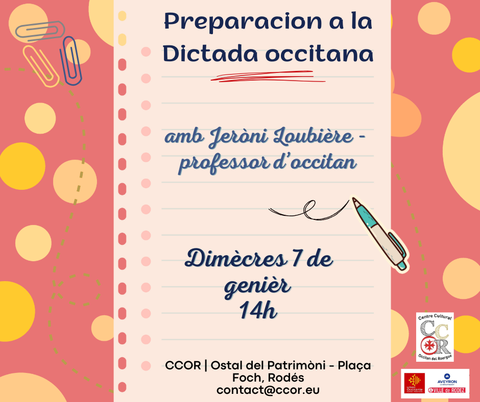 – Talhièr de preparacion a la dictada : setmanièr en decembre/genièr, lo dimècres a 14h.