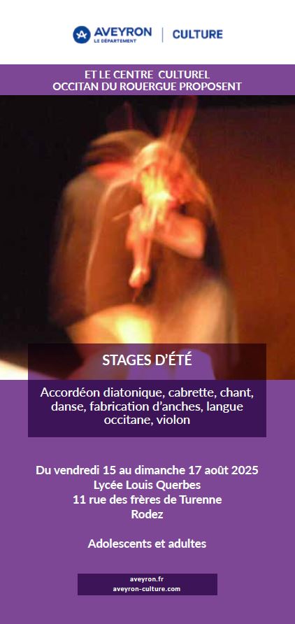 – Estagi de lenga occitana (practica o perfeccionament), musica, cant, dança : 3 jorns en agost, annadièr.