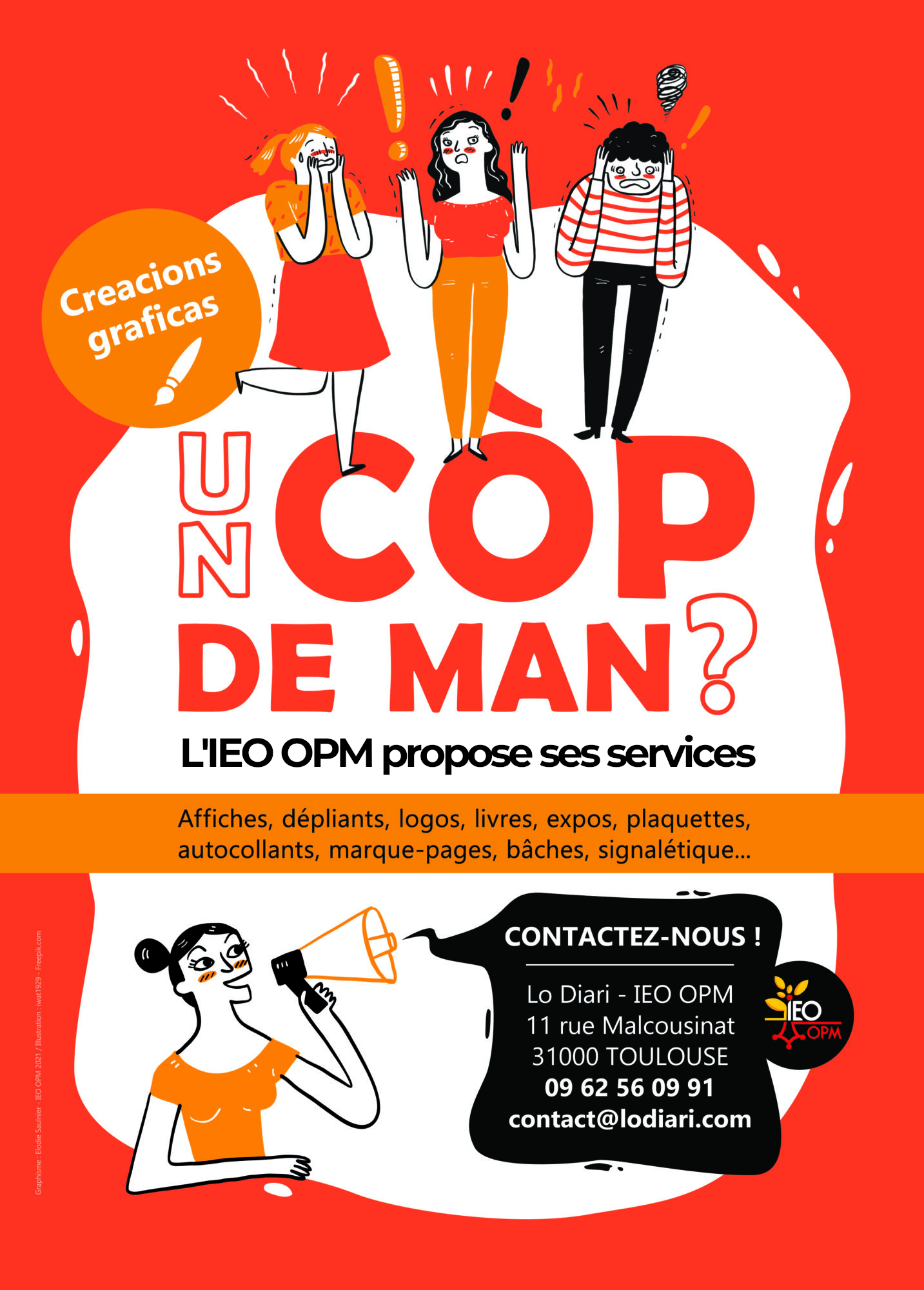 Sabiatz que prepausam de servicis grafics a destinacion de las associacions del malhum IEO… e al delà ? De l’aficha al maquetatge de libres, en passant per desplegants, logos, pegasolets, los besonhs pòdon èsser variats e sèm acostumats de realizar tot aquò. Enfin, « sèm »… mai que mai Elodia Saulnier, que ne coneissètz sens cap de dobte lo trabalh que fa amb Lo Diari, mas tanben de suls libres per las edicions E…rau !, l’IEO d’Aude, l’IEO d’Òlt…